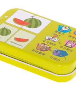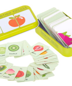 Joc educativ de asociere – carti de joc cu fructe si legume in cutie metalica