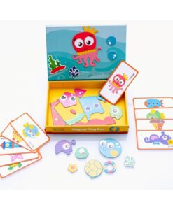 O jucărie educativă și creativă, ideală pentru copiii cu vârsta peste 3 ani, care îmbină învățarea cu distracția într-un mod inteligent și interactiv. Sub formă de carte cu închidere magnetică, acest puzzle include piese tematice cu animale marine, mijloace de transport și elemente de alfabet, fiind perfect pentru joaca acasă sau în deplasare.