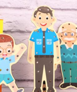 Mod de utilizare: Copilul alege una dintre figurine și folosește un șnur pentru a-l introduce prin orificiile existente, imitând coaserea hainelor sau conturarea siluetei. Activitatea poate fi ghidată de un adult sau lăsată la libera imaginație a copilului. Este un joc excelent pentru dezvoltarea motricității fine, esențială în pregătirea pentru scris.