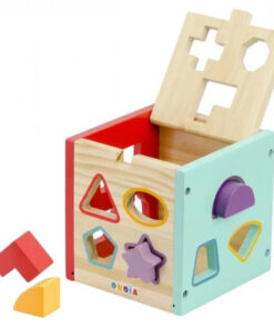 Cubul sortator este o jucărie educativă din lemn, gândită pentru a sprijini dezvoltarea timpurie a copiilor începând cu vârsta de 12 luni. Fiecare dintre cele 5 fețe laterale și capacul superior include decupaje în forme variate, în care copilul trebuie să potrivească cele 13 forme geometrice colorate incluse în set. Formele sunt viu colorate, sigure și adaptate pentru mânuțele mici ale copiilor.