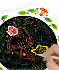 Setul creativ cu planse razuibile contine 8 planse ce trebuie razuite cu instrumentul de lucru ce vine in pachet, descoperind treptat, frumusetea tablourilor ascunse dedesubt.
