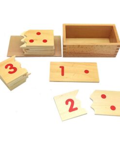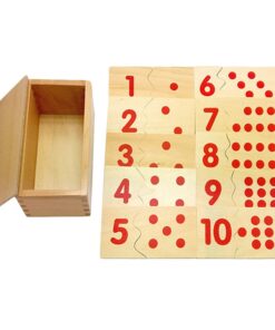 Setul Montessori „Numere și Cantități” este un material didactic conceput pentru a sprijini dezvoltarea timpurie a conceptelor matematice fundamentale prin explorare senzorială și asociere logică. Acest set conține plăcuțe din lemn divizate în două părți: una cu cifra scrisă clar și alta cu reprezentarea cantitativă sub formă de puncte roșii, astfel încât copilul să poată realiza potrivirea corectă între simbol și cantitate.