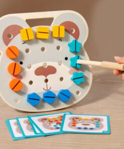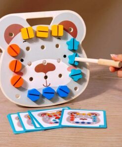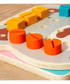 Acest joc educativ din lemn este conceput pentru a dezvolta coordonarea mână-ochi, motricitatea fină și recunoașterea formelor și culorilor. Prin înșurubarea pieselor pe suportul din lemn în formă de urs, copiii își îmbunătățesc dexteritatea și abilitățile de logică și asociere.