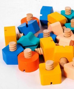 - 25 de șuruburi din lemn, în diverse forme geometrice și culori