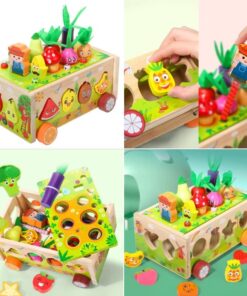 ✔ Sortator de forme – cei mici pot introduce diferite fructe și legume în orificiile potrivite, dezvoltând coordonarea mână-ochi și recunoașterea formelor.