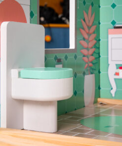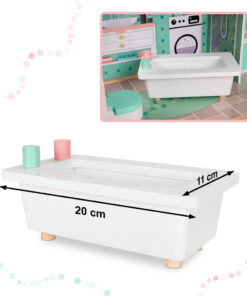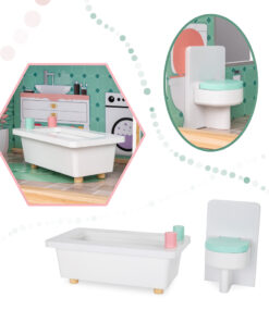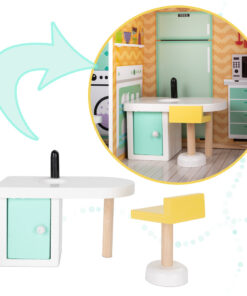 Casuta din lemn este complet utilata si mobilata. Setul include mobilier frumos din lemn si mici rezidenti, care vor fi o completare perfecta pentru orice camera din casa.