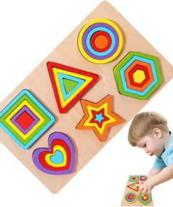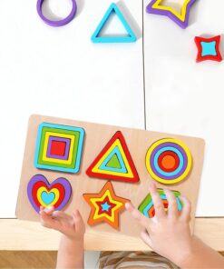 Puzzle-ul educativ, din lemn, de tip Montessori ajuta la dezvoltarea abilitatii motrice, invatarea formelor, culorilor si asocierea pieselor dupa forma si marime.