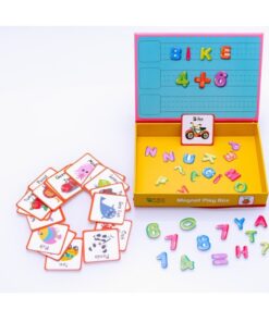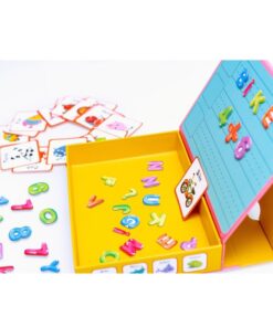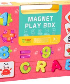 Joc educativ multifuncțional – Conține 81 de piese magnetice (litere, cifre și semne matematice) și 20 de carduri ilustrate cu imagini și cuvinte sugestive.