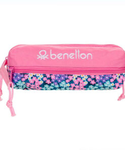 Penar pentru școală din seria Benetton cu 3 fermoare, roz cu imprimeu floral. Ideal pentru elevi scoala primara si adolescenti.