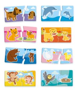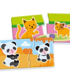 Acest joc educativ este ideal pentru a-i introduce pe cei mici in lumea puzzle-urilor. Primul puzzle al bebelusului fiind alcatuit din cate 2 puzzle-uri, cele 12 modele disponibile sunt perfecte si usor de asociat. Datorita dimensiunilor mari ale pieselor, copilasii pot prinde piesele cu usurinta, iar datorita culorilor vii, acestia vor fi captivati si vor dori sa descopere rapid rezolvarea jocului.