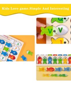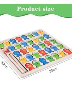 Puzzle magnetic, joc educativ de pescuit din lemn – Litere si cifre, 3 ani+
