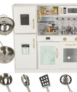 Setul de bucatarie, ca unul dintre putinele, include un uscator, datorită caruia itii vei invata copilul sa spele intr-un mod placut! Cel mai bine este ca micutul tau invata sa spele vasele greu de spart!
