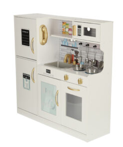 Bucatarie din mdf pentru copii Lulilo, 80×80 cm, cu accesorii si frigider