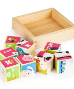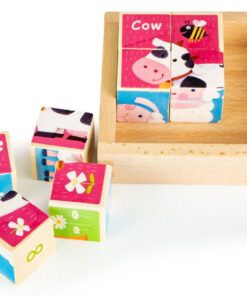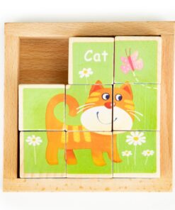 Puzzle-ul cubic va fi perfect pentru a-i ajuta pe cei mici sa-si imbunatateasca abilitatile de gandire, potrivire, coordonare mana ochi si motricitate fina. Fiecare puzzle completat va reproduce una din cele 6 imagini ale acestui joc. Pe fetele fiecarui cub se gasesc imprimate imagini diferite, astfel ca micutii exproratori vor trebui sa manevreze cuburile din lemn astfel incat sa identifice toate fetele care se potrivesc si sa alcatuiasca puzzle-ul.