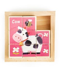 Set 3 puzzle cubic din lemn – Animale, 9 cuburi