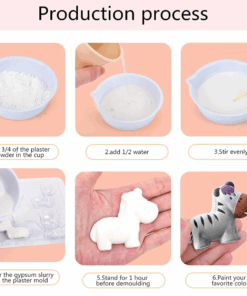 - INCLUS: magnet, formă pentru 6 magneți, perie, castron, vopsele, spatula, gips până la o greutate de 145 de grame.