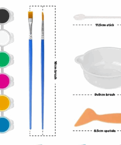 - 6 borcanase de vopsele (rosu, galben,albastru,verde,negru,alb);