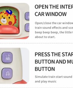 Funcții: muzică, lumină, efect de abur real, sortator de forme, telefon interactiv, roți stabile și design anti-răsturnare