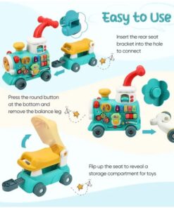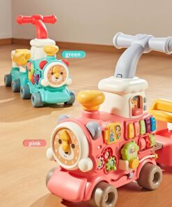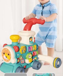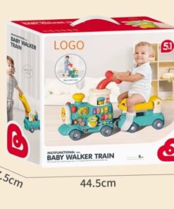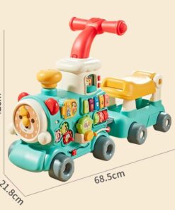 Acest antepremergător 5 în 1 combină distracția cu învățarea prin activități inspirate din pedagogia Montessori, oferind multiple funcții: jucărie de împins, tren de călărie, centru de activități educative, sortator de forme și jucărie muzicală cu aburi reali.