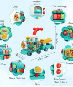 Designul său colorat și robust atrage atenția bebelușilor, stimulând curiozitatea, echilibrul și abilitățile motrice fine, în timp ce diversele elemente educative încurajează învățarea timpurie prin joacă.