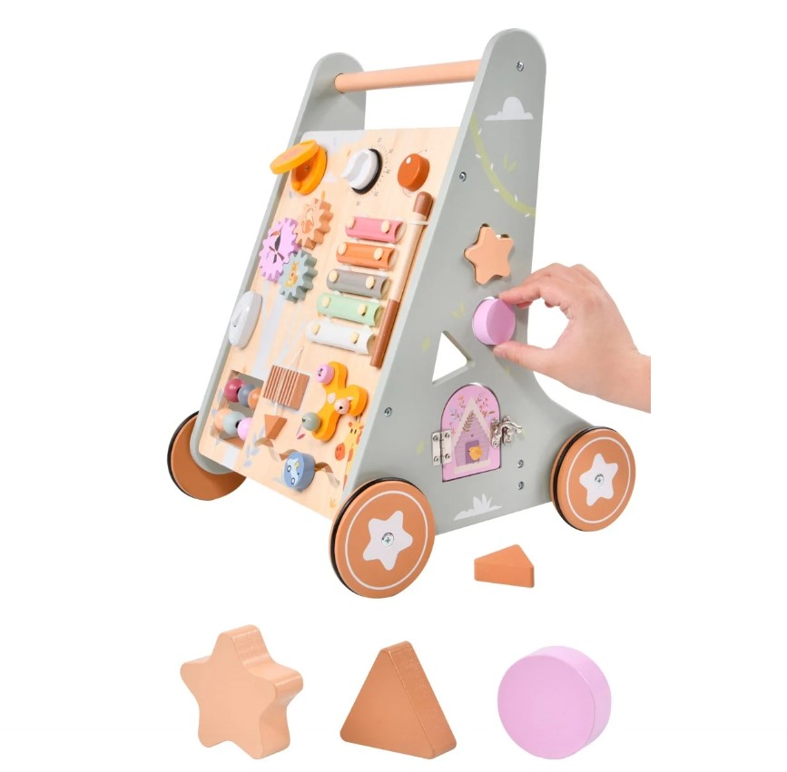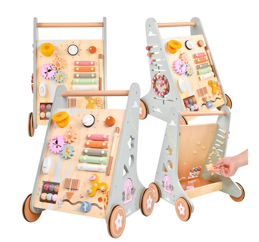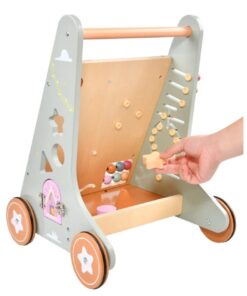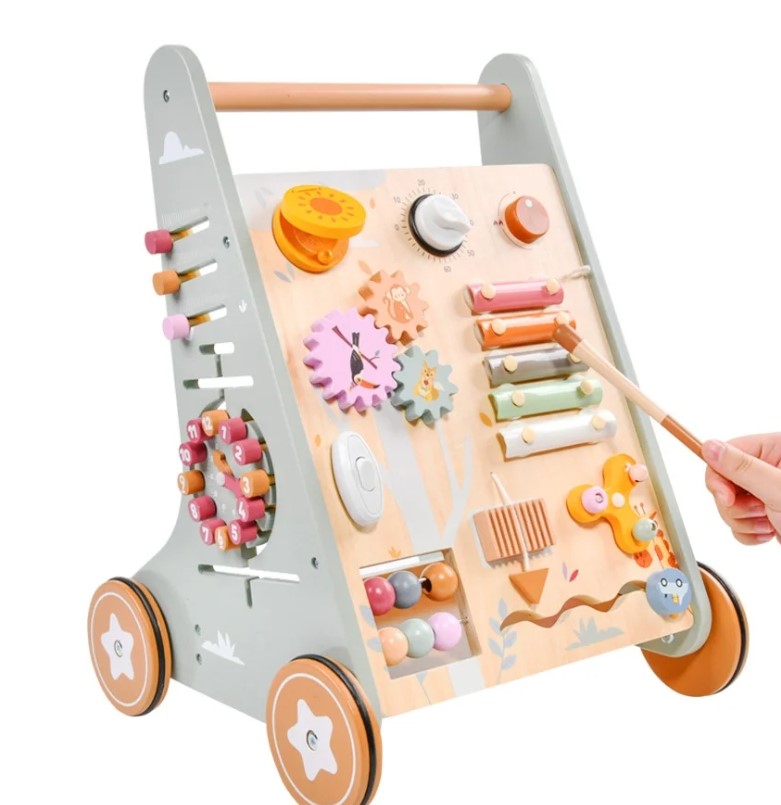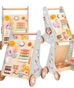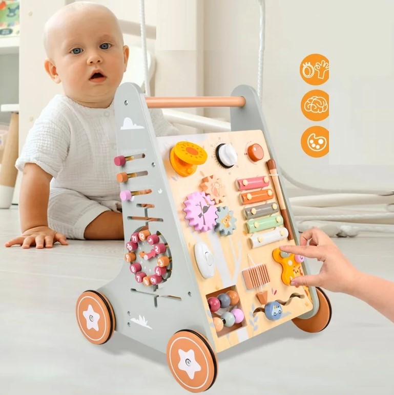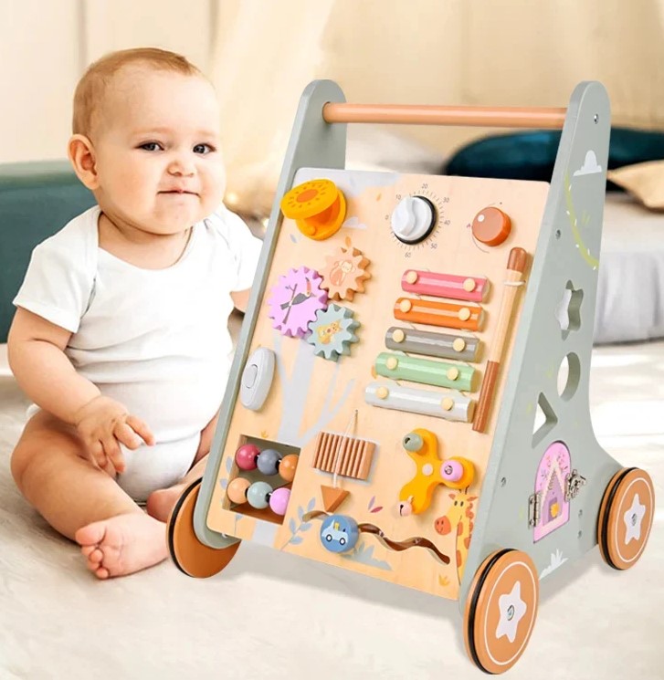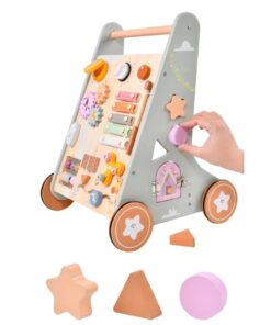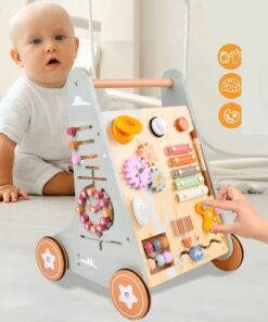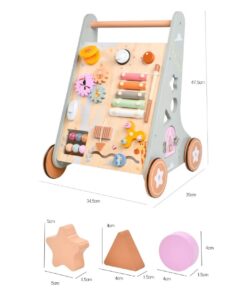 Antepremergătorul din lemn cu activități de tip Montessori este un instrument esențial pentru susținerea dezvoltării motorii și cognitive a bebelușilor începând cu vârsta de 6 luni. Construit din materiale naturale și sigure, acesta oferă o varietate de activități interactive care stimulează explorarea senzorială, coordonarea mână-ochi și echilibrul în primii pași ai copilului.