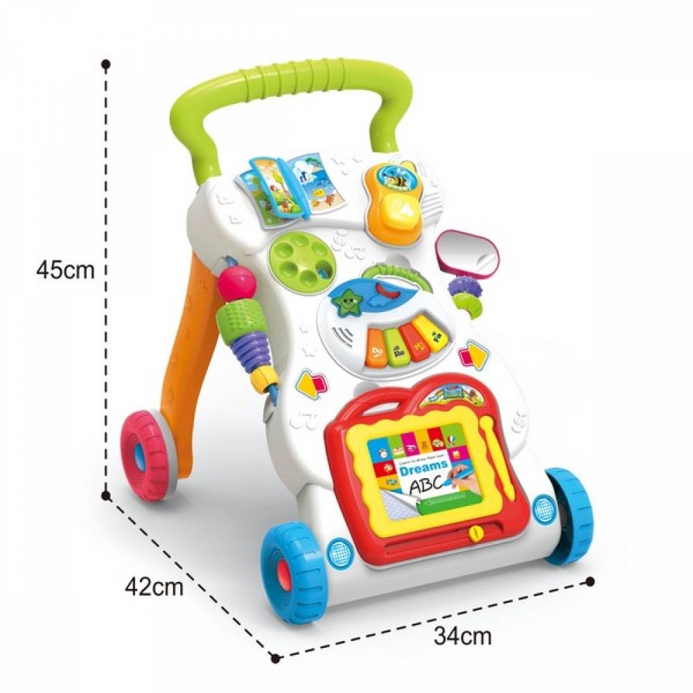 Acesta este un centru interactiv de joaca echipat cu jucarii colorate permanente si detasabile pentru bebelusii care au inceput deja sa faca primii pasi. Functional si pentru un copil care inca nu a inceput sa stea in picioare. Jucaria contribuie la dezvoltarea creativitatii, a indemanarii si a motricitatii