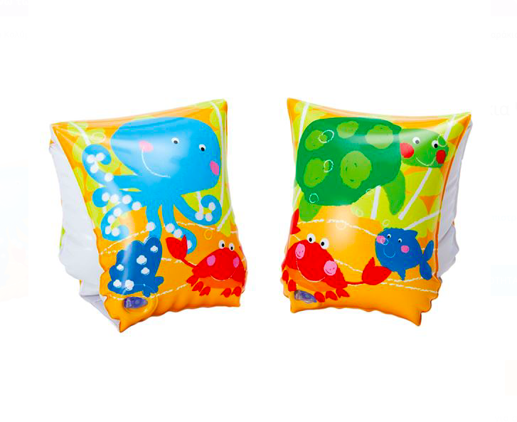 Aripioare gonflabile de înot cu model animale marine și imprimeu pesti, cu 2 camere de aer si 2 supape, pentru siguranta sporita.