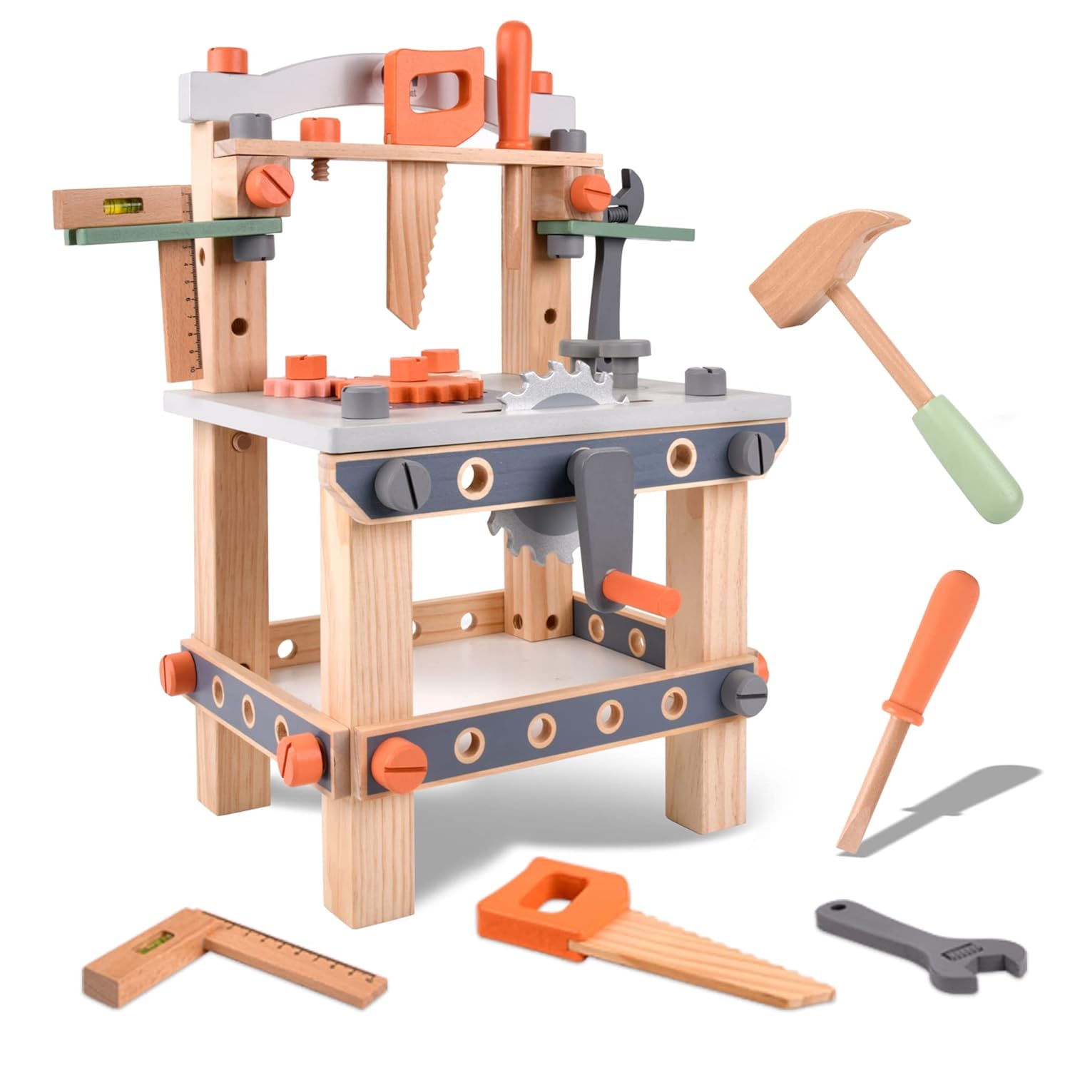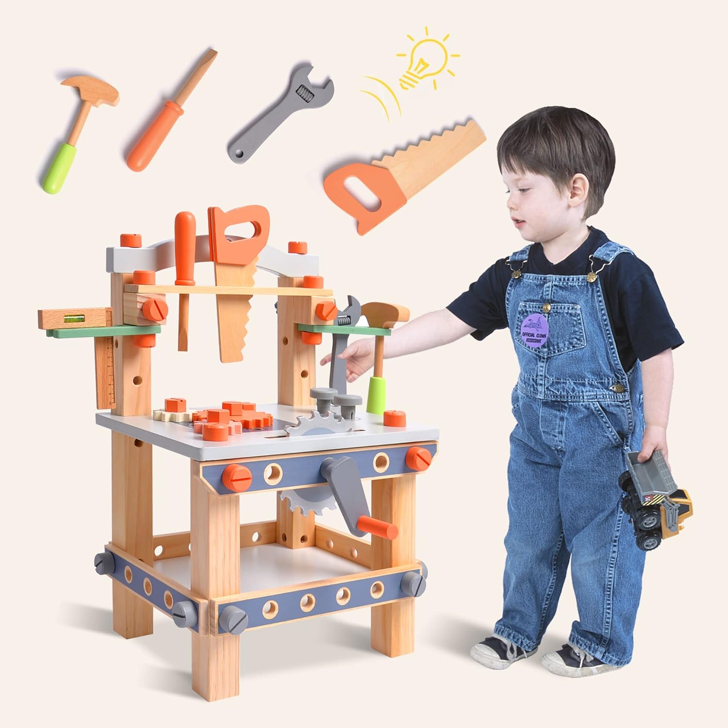 Uneltele incluse, surubelnita, cheia, rigla sau ciocanul sunt eficiente pentru a-si exersa inteligenta, prinderea obiectelor si asocierea lor.