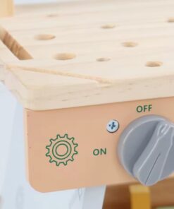 Copilul poate folosi uneltele pentru a înșuruba și deșuruba piesele, pentru a roti roțile dințate sau pentru a construi forme și obiecte simple. Bancul are spațiu dedicat pentru depozitarea accesoriilor, încurajând organizarea și păstrarea ordinii după terminarea jocului.