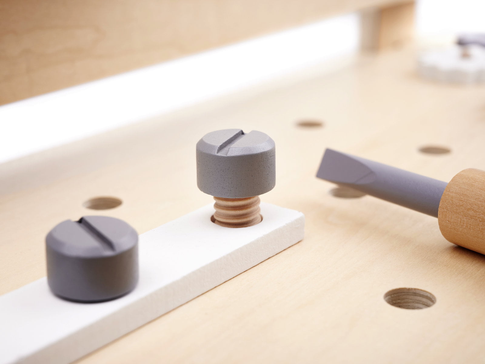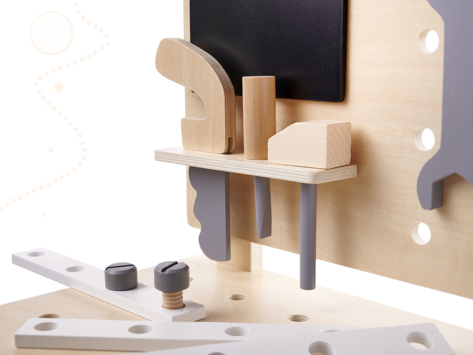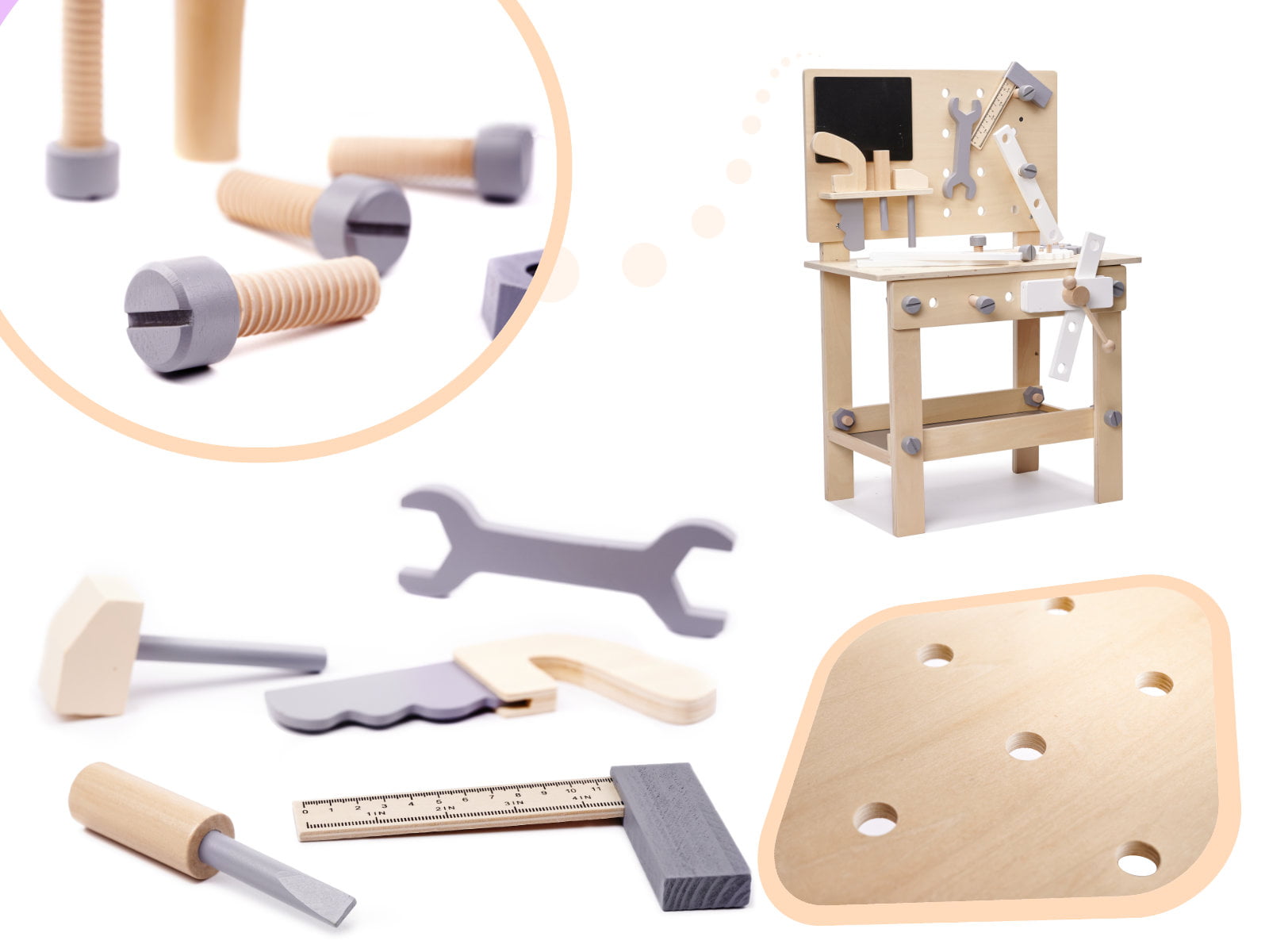 Atelierul nu este doar o mare distractie, ci si o forma de invatare si dezvoltare. Insurubarea piulitelor si a suruburilor, batutul cuielor sau taierea pieselor de joc este o modalitate excelenta de a exersa abilitatile manuale.