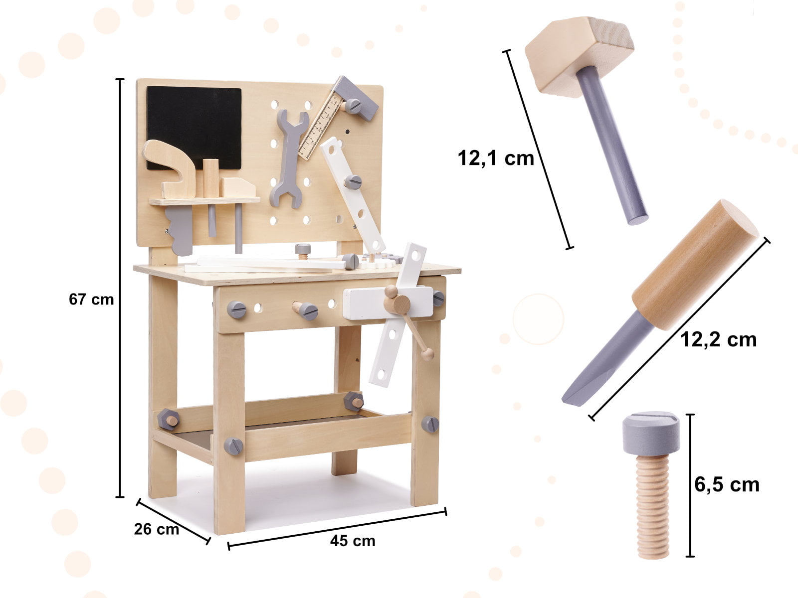 Banc de lucru din lemn 67cm, cu 25 de accesorii, 2 ani+