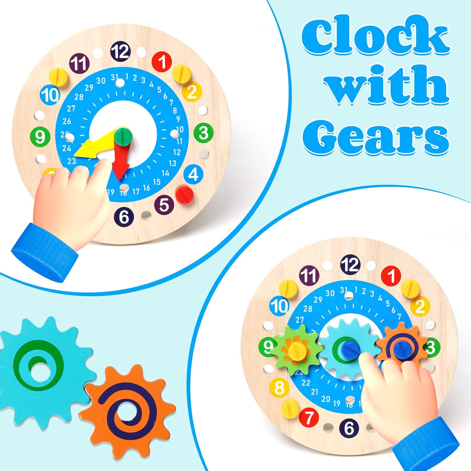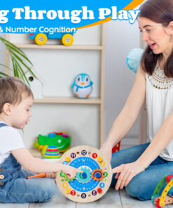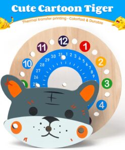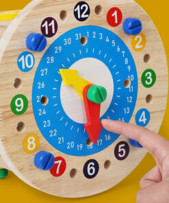 Ajută la învățarea ceasului și noțiunilor de timp prin cadranul inscripționat cu ore și minute.