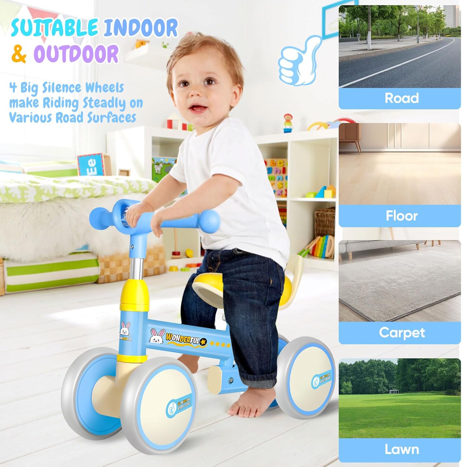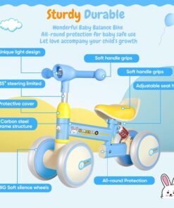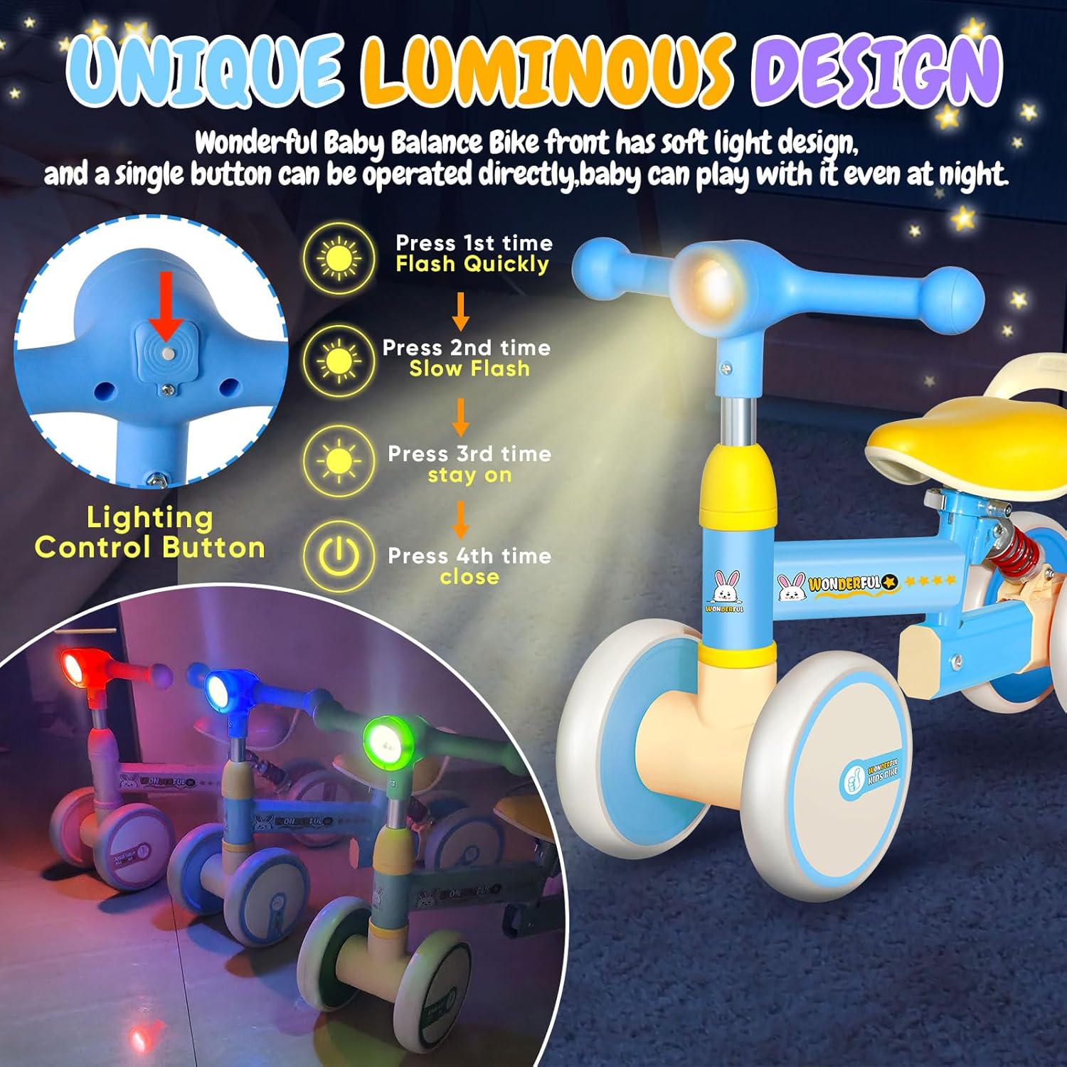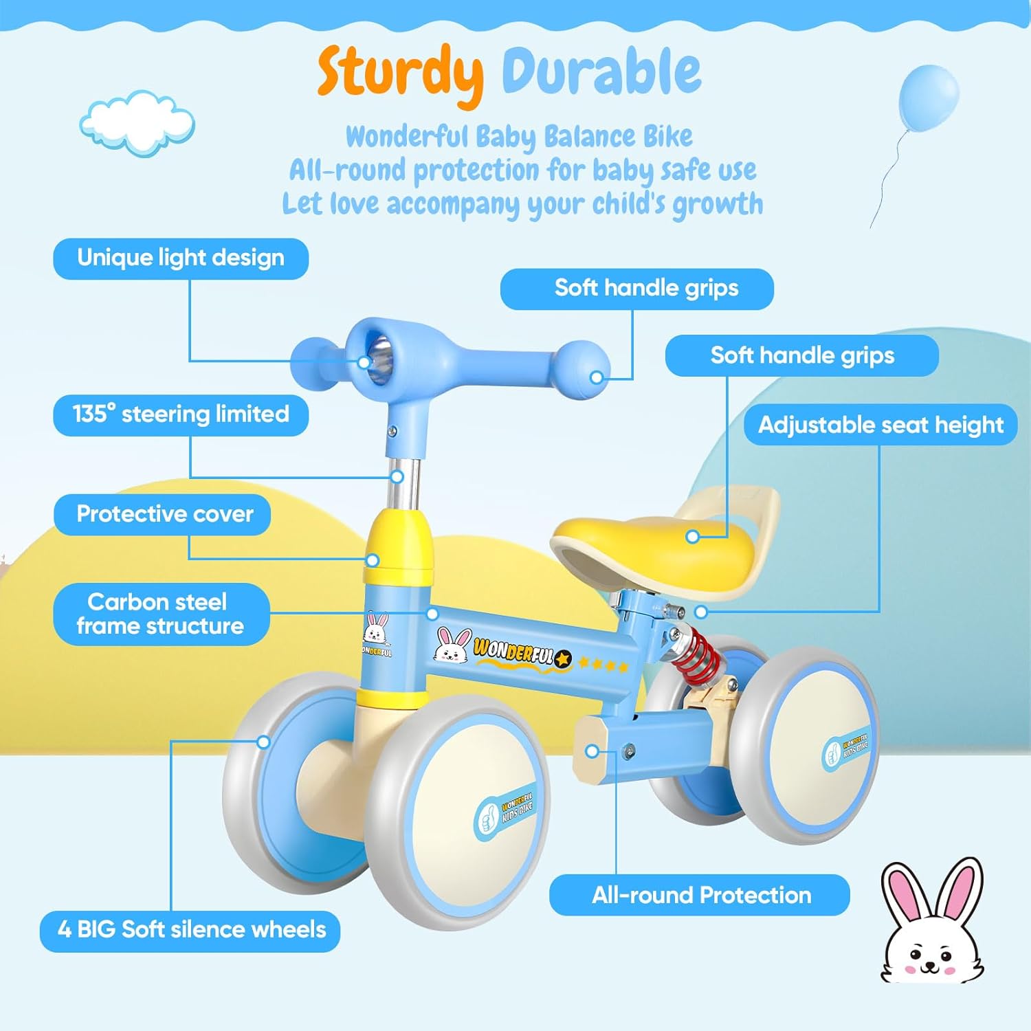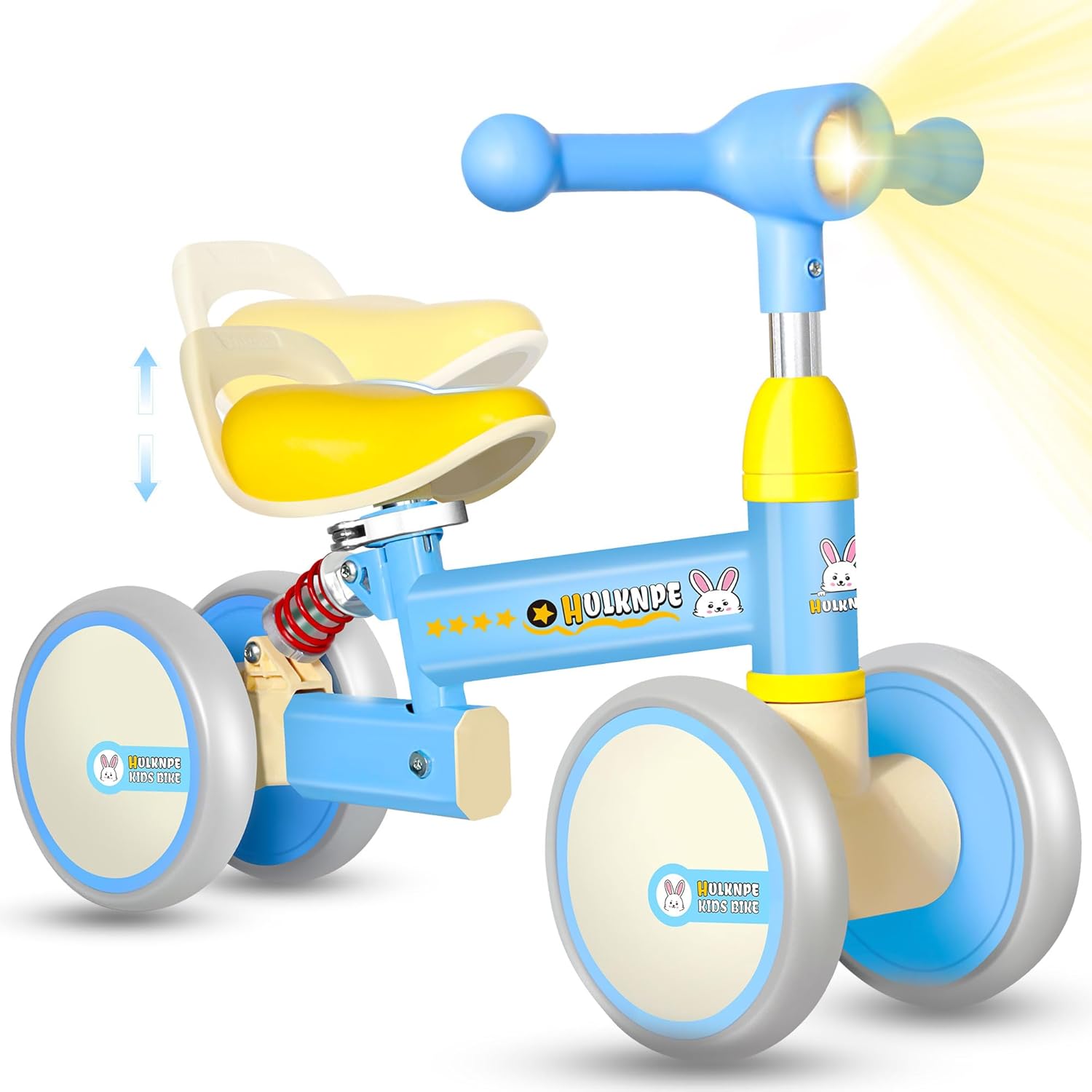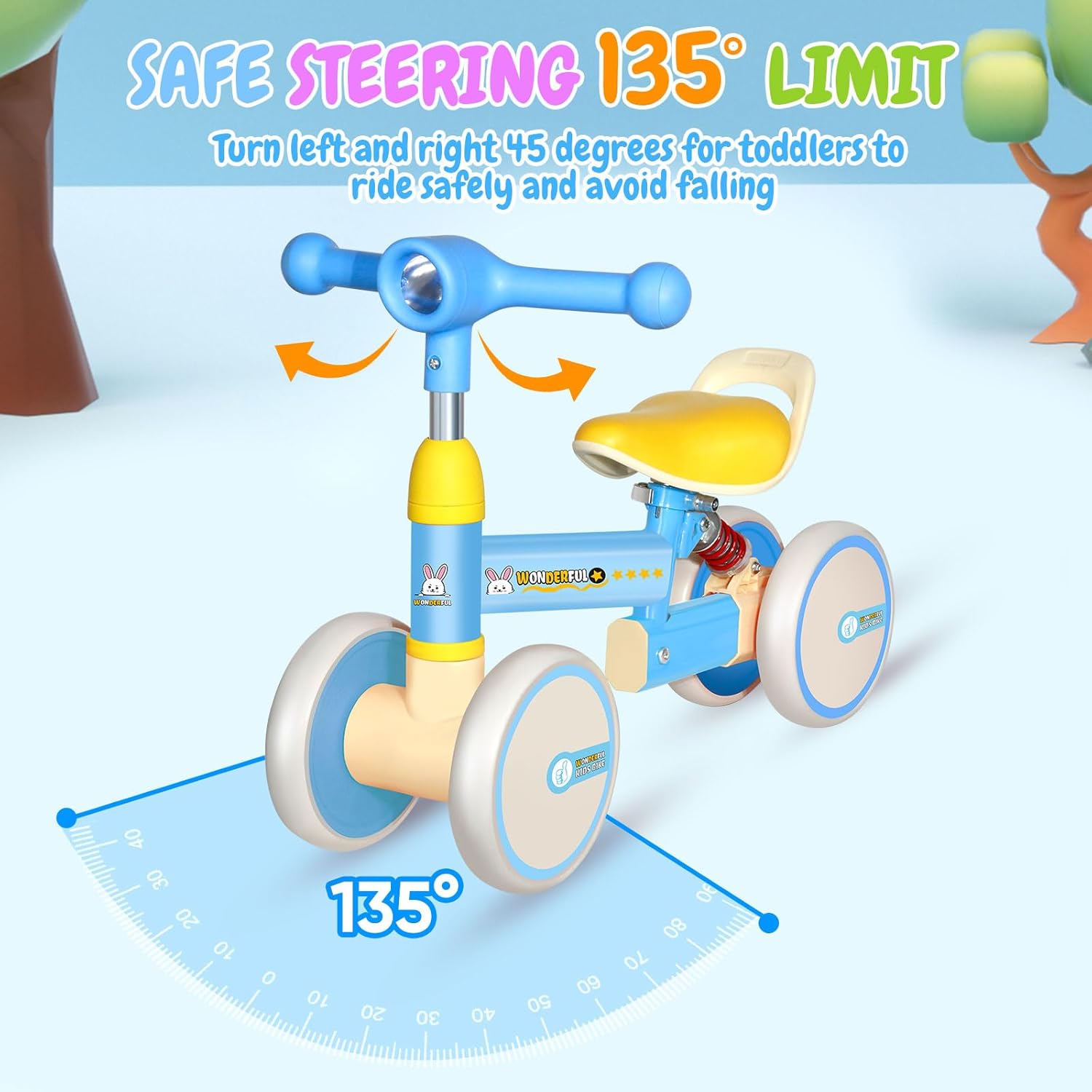 Bicicletă fără pedale cu 4 roți – Albastru – cu lumini, sunete și șa reglabilă