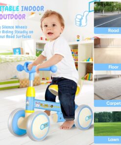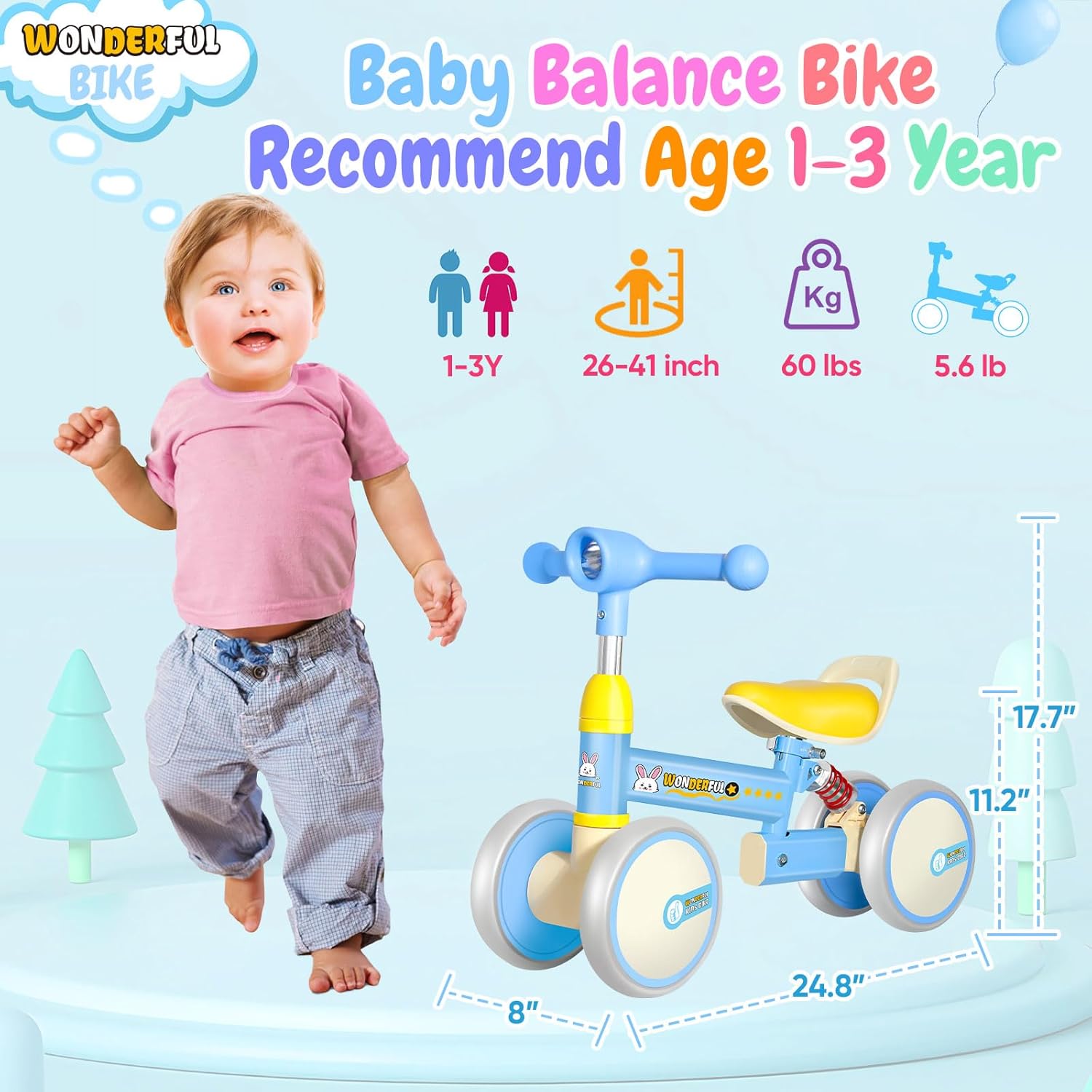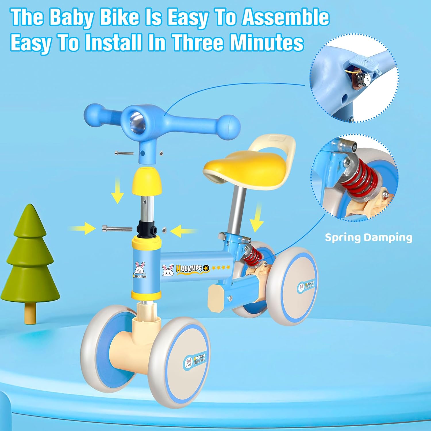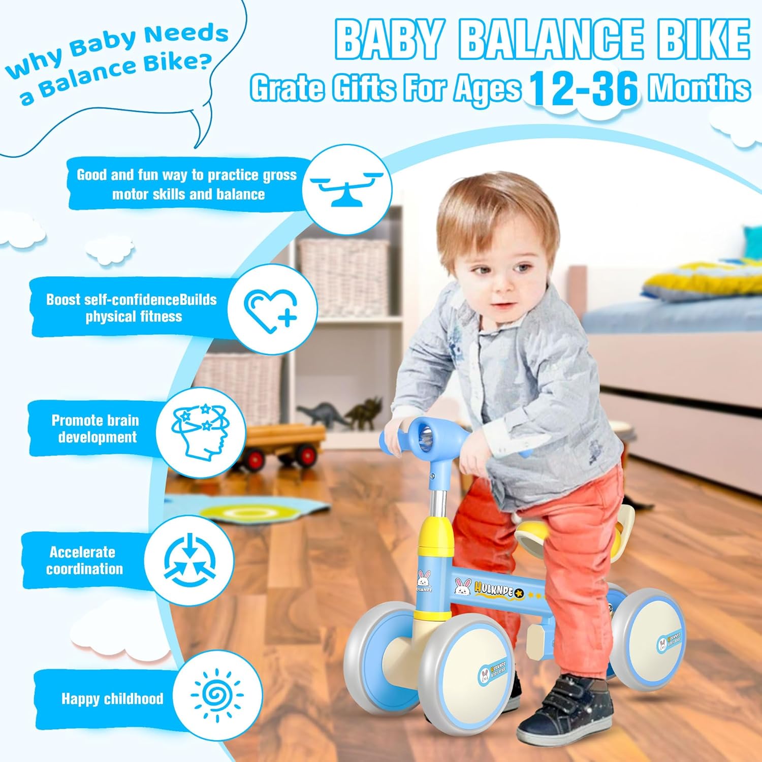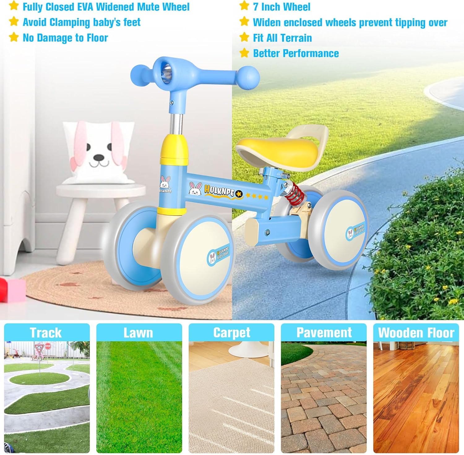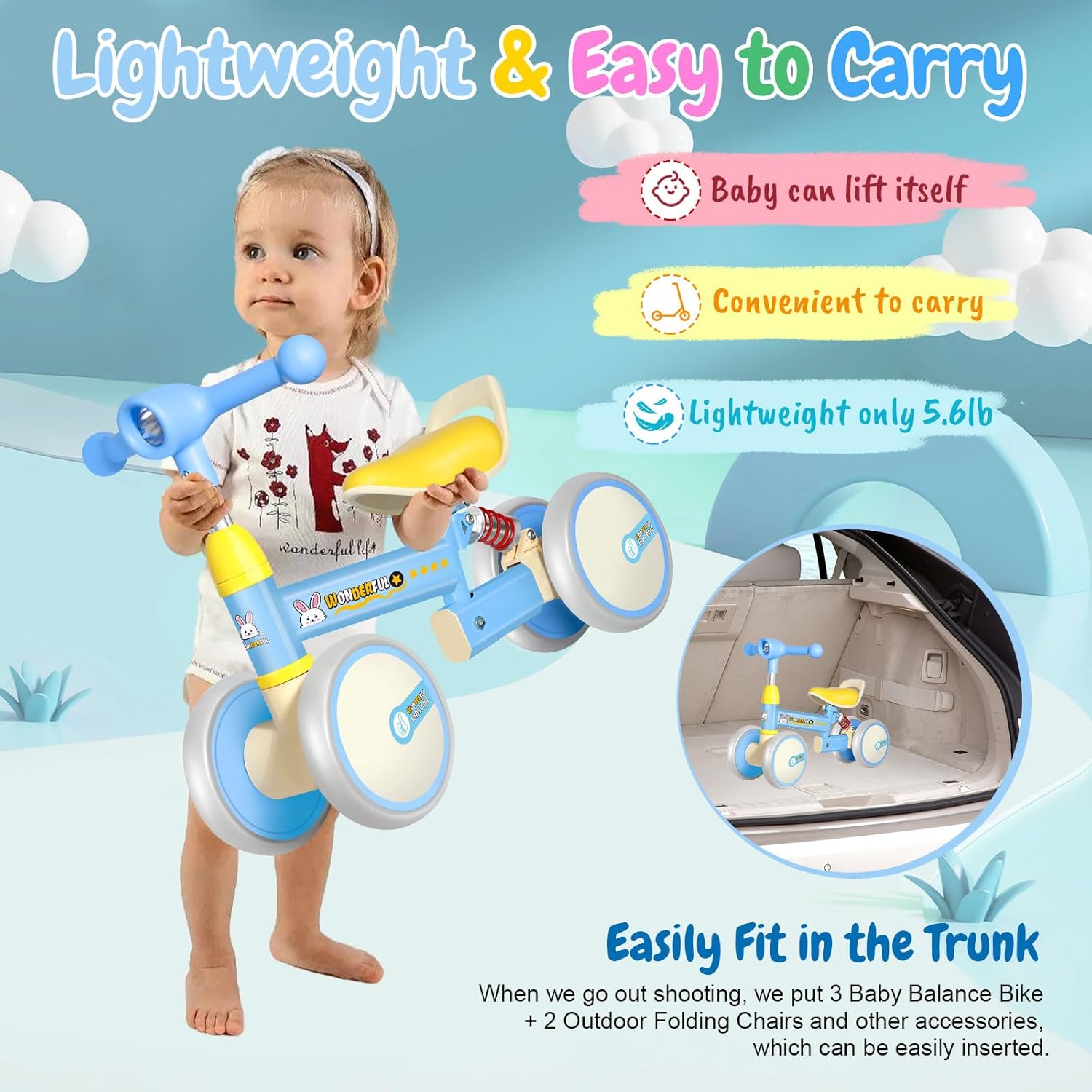 Bicicletă fără pedale cu 4 roți – Albastru – cu lumini, sunete și șa reglabilă