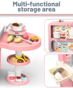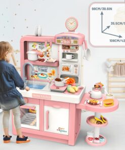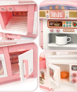 Bucătăria interactivă pentru copii oferă o experiență realistă de joacă, cu efecte de sunet și lumină care simulează gătitul adevărat. Este dotată cu chiuvetă funcțională cu apă, plită cu inducție tactilă, cuptor, cuptor cu microunde și spații de depozitare multifuncționale.