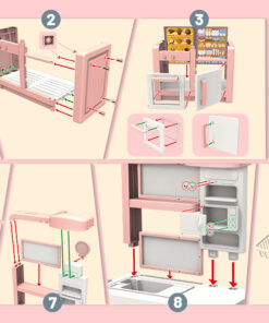 Setul include 44 de accesorii variate, precum oale, tigăi, ustensile, farfurii, cești, tacâmuri și alimente din plastic. Copiii pot găti, spăla vasele, organiza ustensilele și crea propriile scenarii de joacă de rol, dezvoltându-și imaginația și abilitățile sociale.
