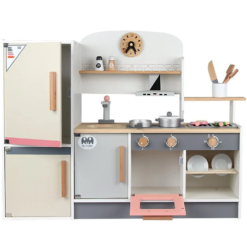 Transformă jocul de rol al copiilor într-o experiență plină de imaginație și creativitate cu această bucătărie din lemn, perfectă pentru micii bucătari de la vârsta de 3 ani! Designul realist și funcțional al bucătăriei îi ajută pe copii să exploreze activitățile de zi cu zi ale unui bucătar, dezvoltându-și abilitățile motorii fine, coordonarea mână-ochi și capacitatea de rezolvare a problemelor.