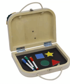 - Accesorii incluse: Markere colorate (3 bucăți), forme geometrice magnetice și figurine tematice cu animale, pentru activități creative și educative.
