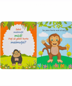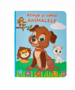 Carte educativa, Atinge si simte, cu tematica animale, au tesaturi reale, astfel incat copilul sa poata percepe diferite texturi.