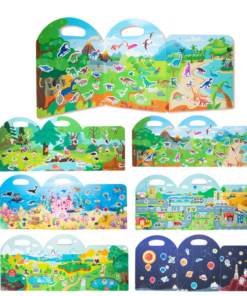 Copilul poate alege stickerele preferate și le poate așeza pe scenele viu colorate din carte — la fermă, în junglă, la munte sau pe câmpie. Stickerele pot fi mutate de nenumărate ori, permițând combinarea liberă a personajelor și crearea de noi povești la fiecare utilizare.