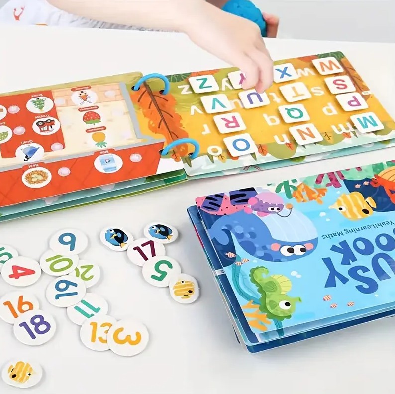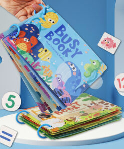 Ideală pentru călătorii și activități acasă, cartea Busy Book este compactă, practică și oferă nenumărate ocazii de învățare prin joacă.