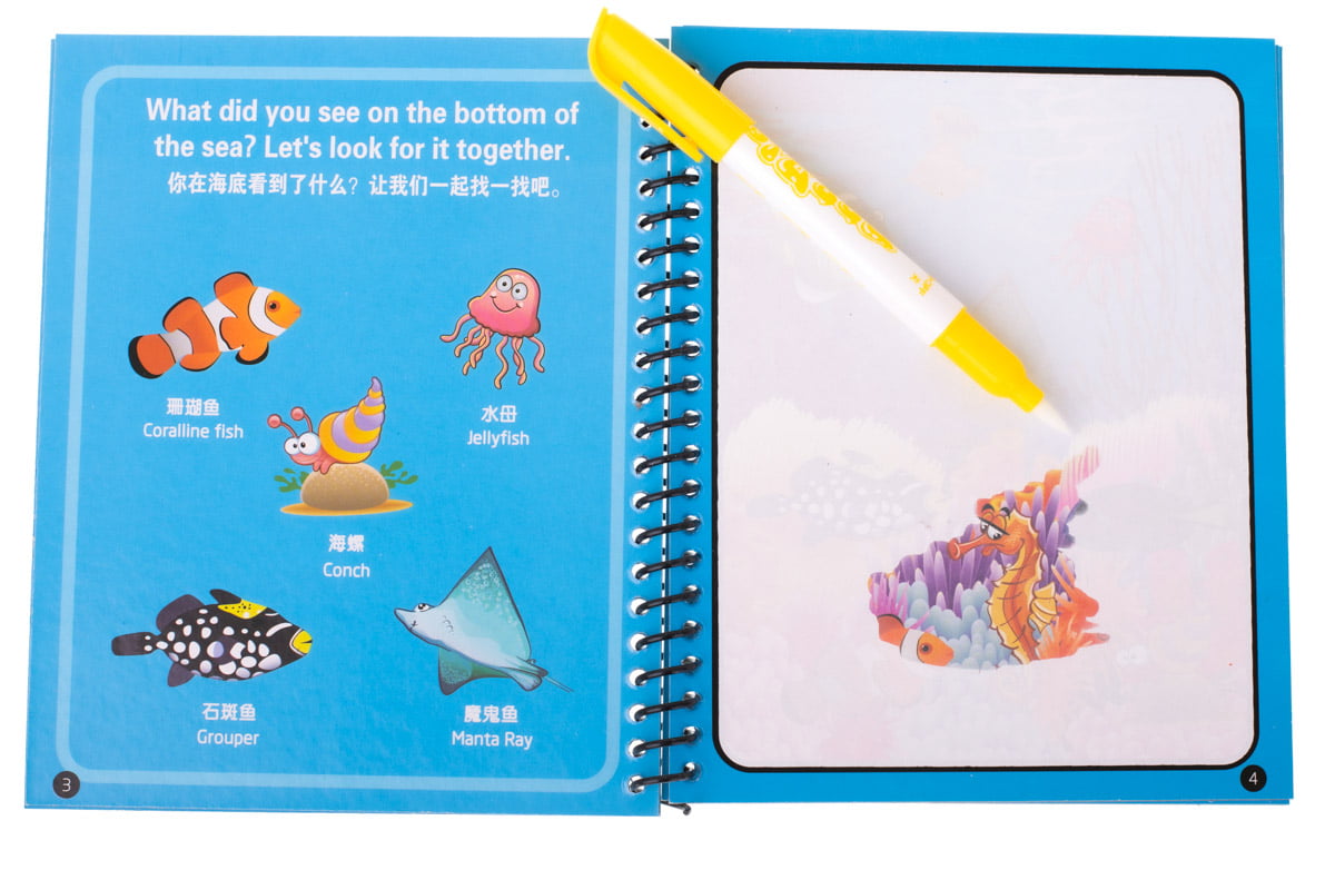 Nu aveti nevoie de creioane, markere sau carioci pentru a adauga culoare imaginilor din carte. Tot ce trebuie sa faceti este sa umpleti cu apa markerul atasat setului si puteti incepe imediat sa desenati.