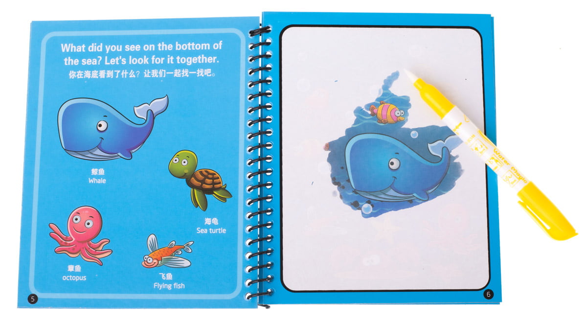 Lasati copilul sa devina un adevarat artist. Nu trebuie sa va faceti griji pentru pete si murdarie. Copilul tau va picta doar cu apa. Coloratul cu acest pix magic cu apa dezvaluie frumoase ilustratii ale animalelor. Cand culoarea se va usca, ilustratia dispare si cartea de colorat este gata de o noua folosire.