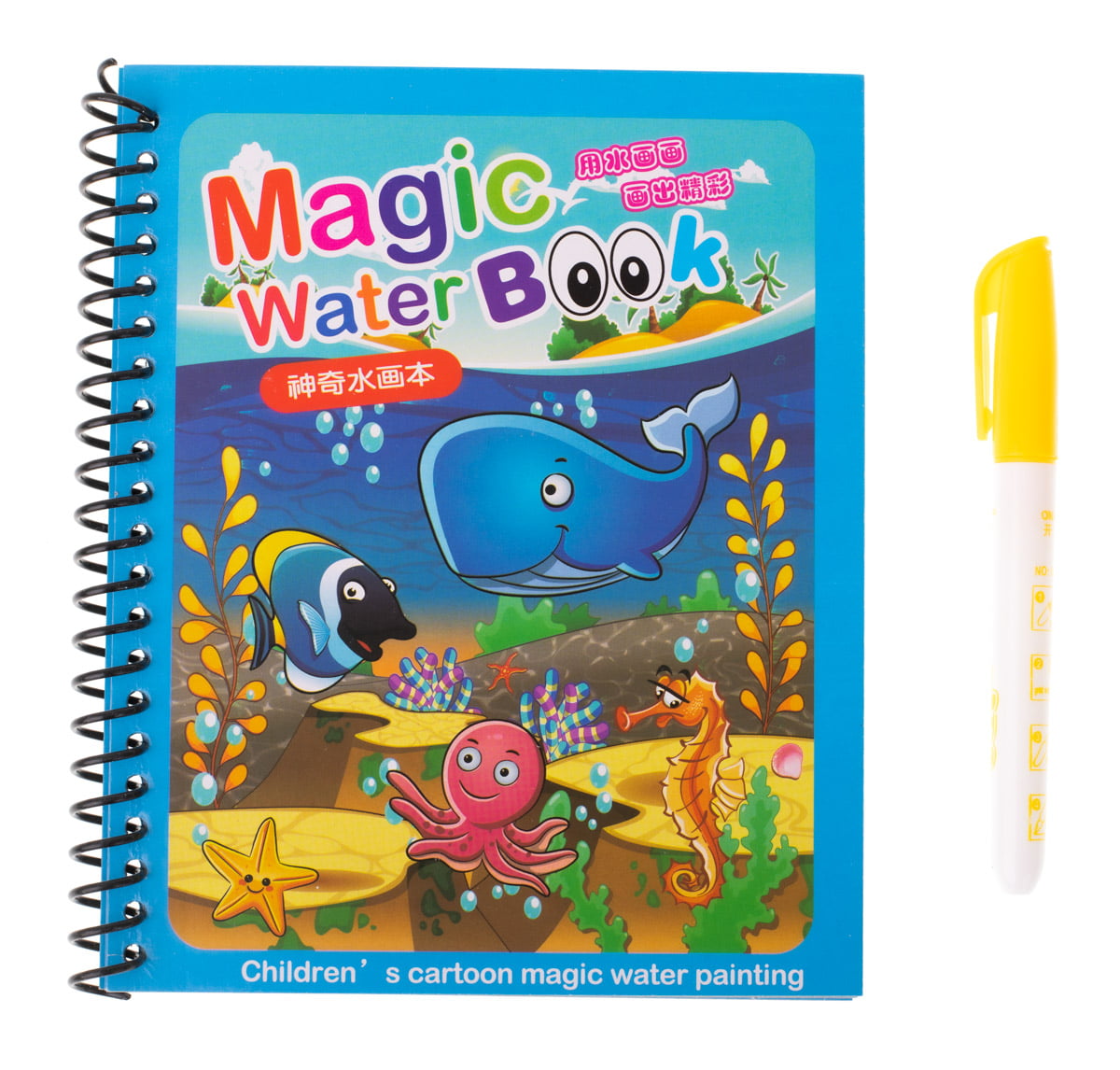 Mod de folosire: Umpleti markerul cu apa, apoi colorati paginile. La contactul cu apa si pe masura ce copilul coloreaza, imaginile ascunse apar pentru ca cei mici sa se bucure de ele. Dupa ce terminam de colorat, in aproximativ 10-15 min paginile se usuca, revenind la imaginea alba initiala, dupa care puteti sa o luati de la capat.