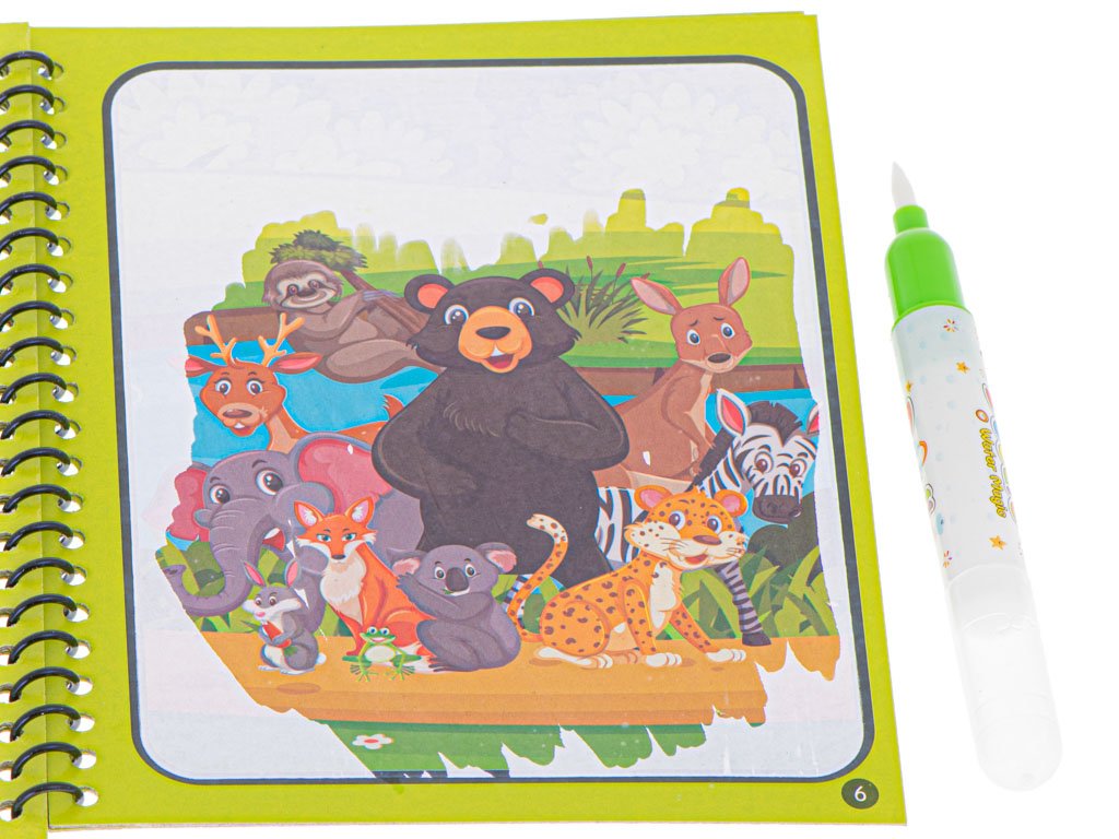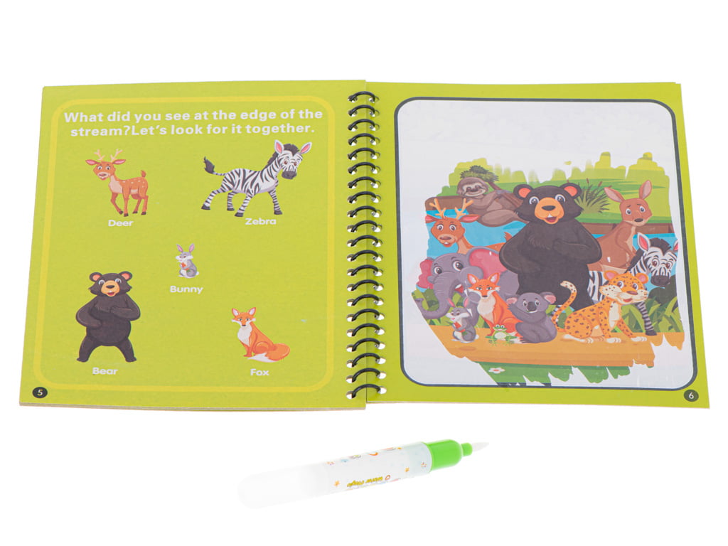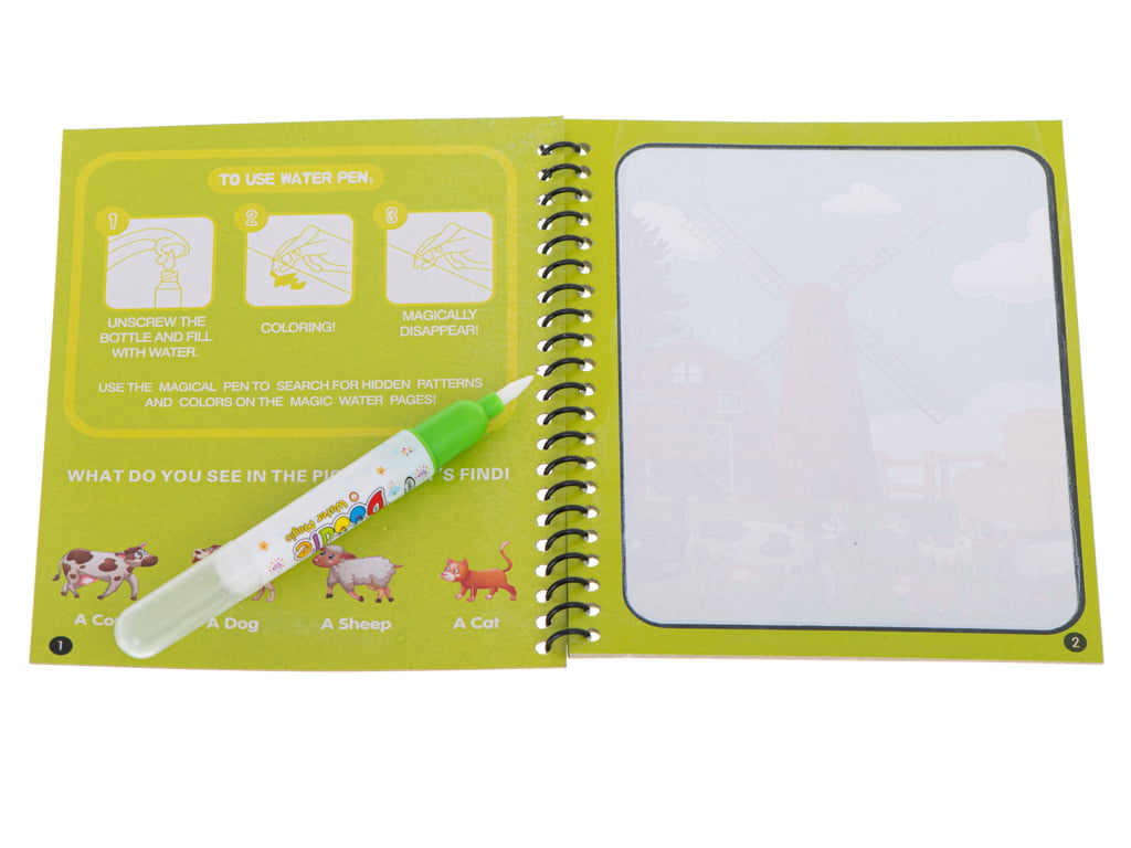 Lasati copilul sa devina un adevarat artist. Nu trebuie sa va faceti griji pentru pete si murdarie. Copilul tau va picta doar cu apa. Coloratul cu acest pix magic cu apa dezvaluie frumoase ilustratii ale animalelor. Cand culoarea se va usca, ilustratia dispare si cartea de colorat este gata de o noua folosire.