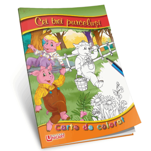 Descoperă lumea plină de invataturi și culoare cu ‘Cei Trei Purceluși’, o carte de povești și colorat de format A5, creată special pentru copii de 2 ani și peste.