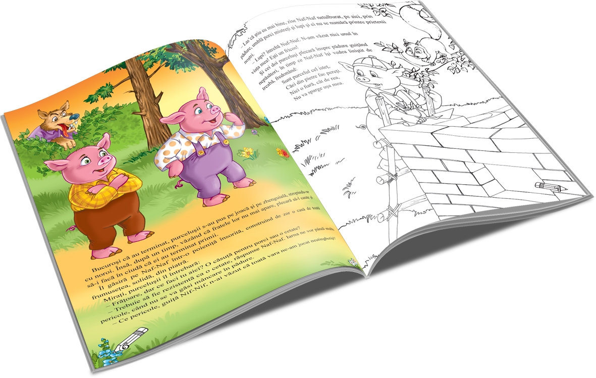 Carte de povesti si colorat, A5, Cei Trei Purcelusi, 2 ani+
