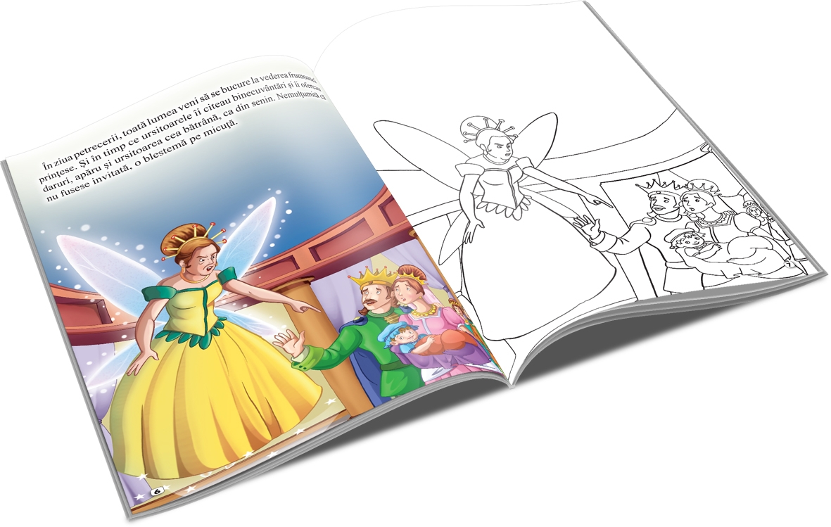 Carte de povesti si colorat, Frumoasa Adormita, 3 ani+