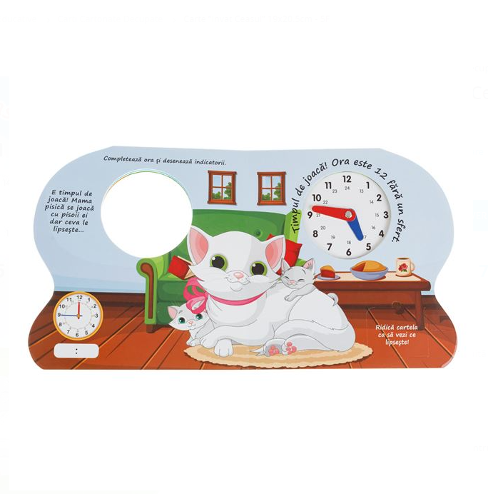 Carte educativa, imagini frumoase si activitati pentru a-l invata pe cel mic ceasul. Urmeaza povestea si cu ajutorul ceasului cu acele colorate, mobile vei invata sa recunosti ora.