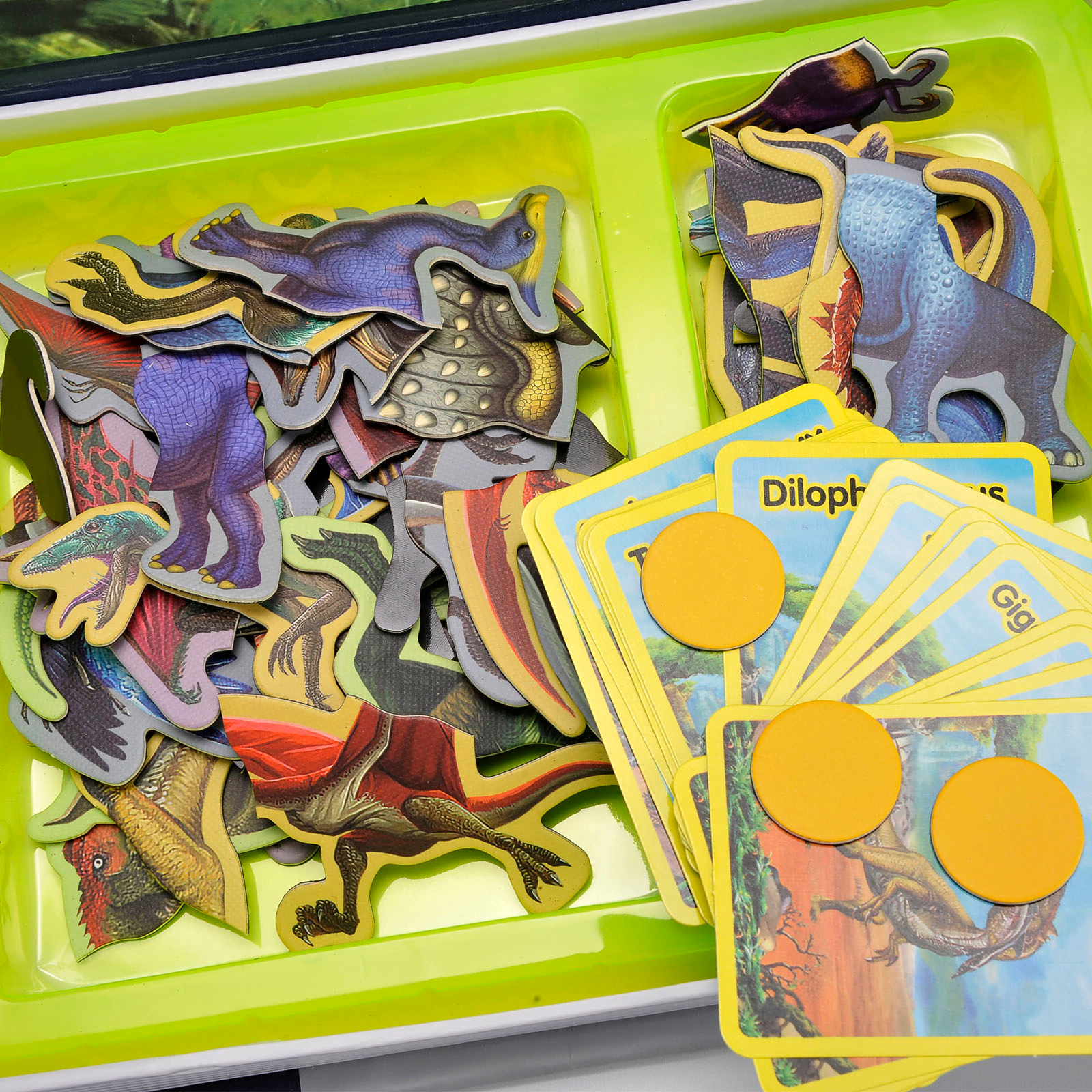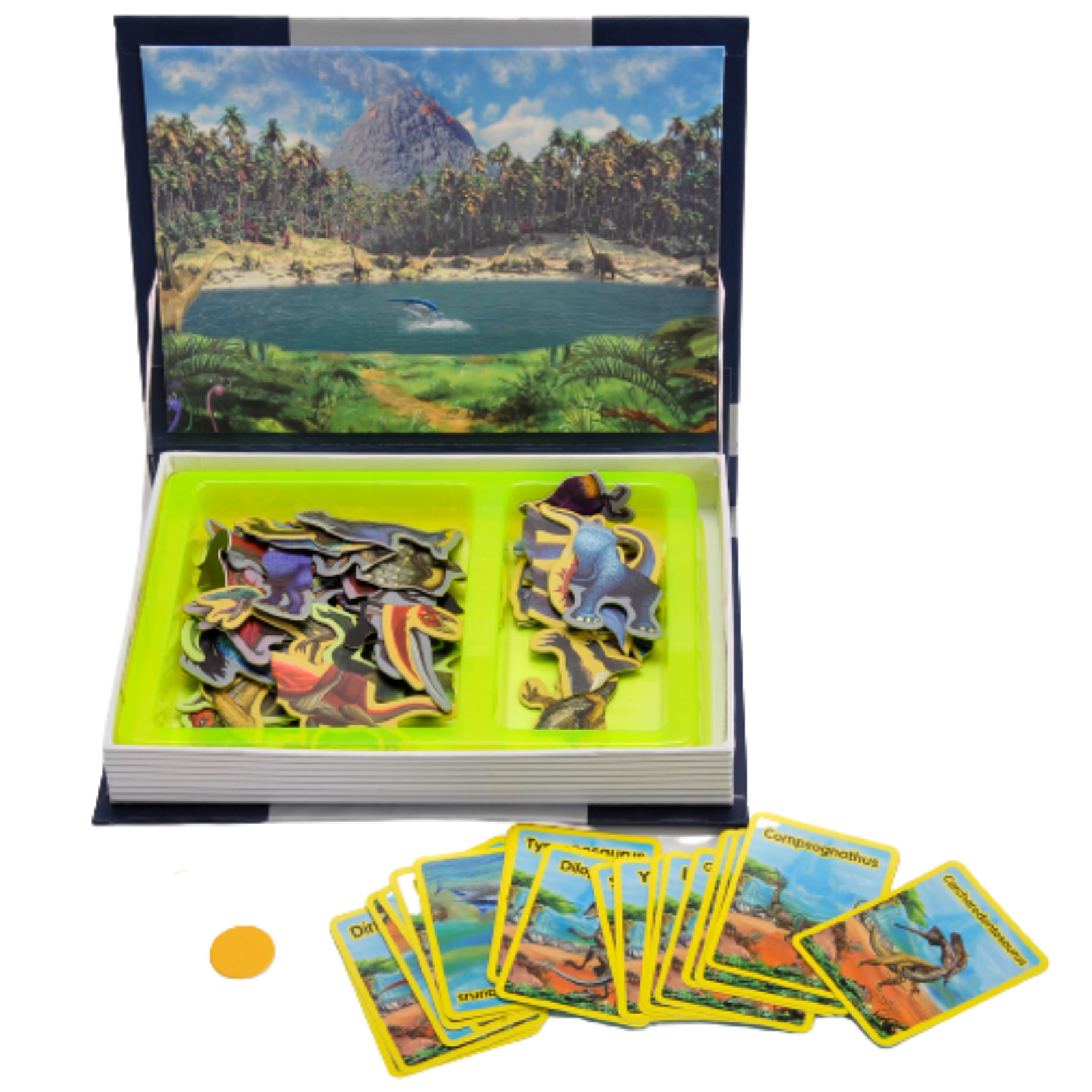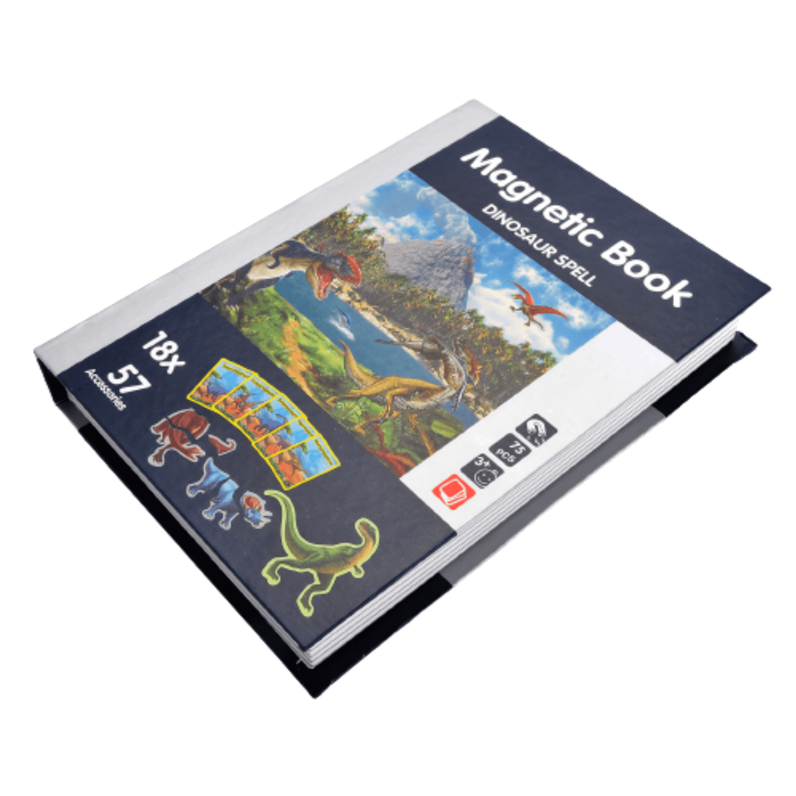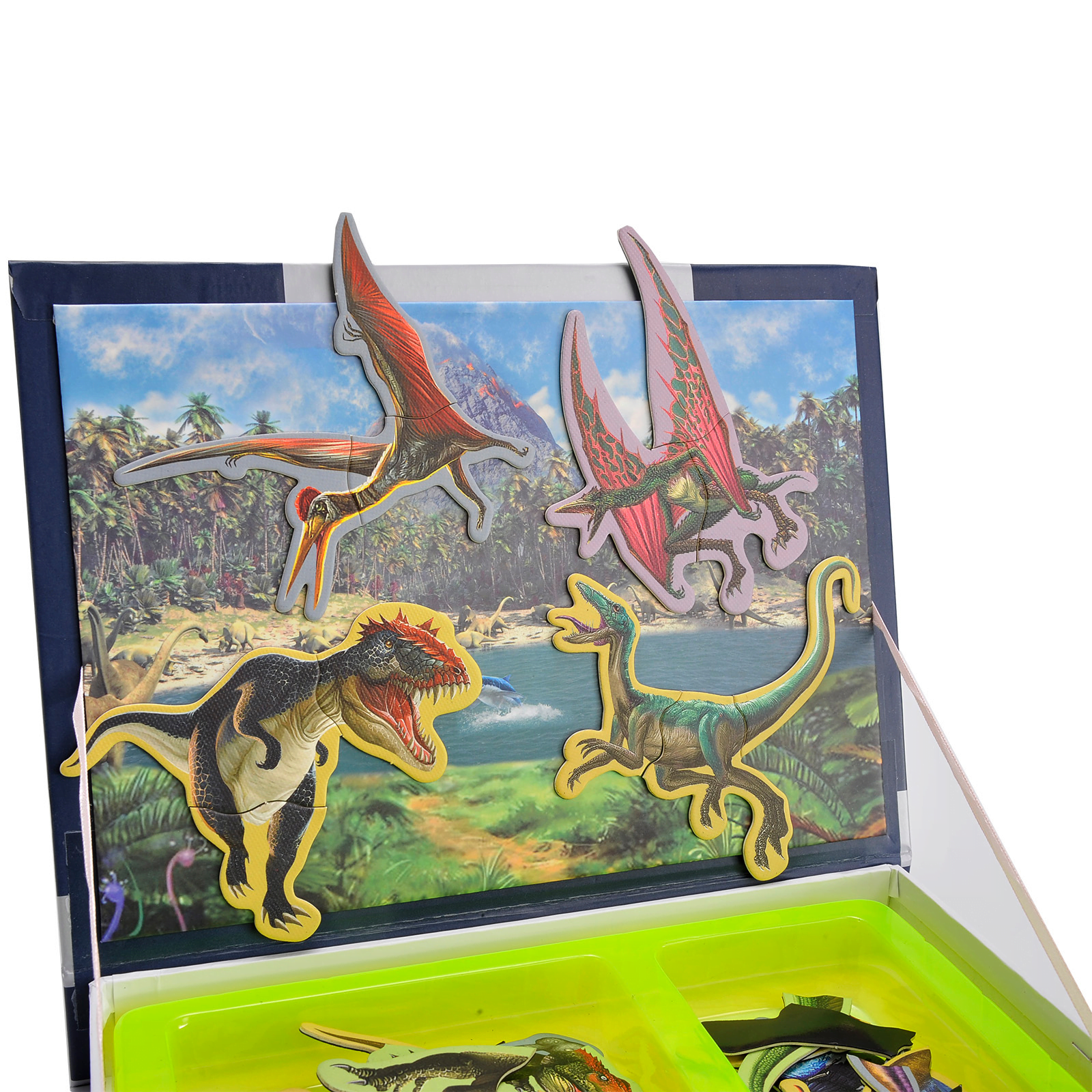 - Jocuri magnetice pentru copii – Carte Magnetica Dinozauri cu 75 piese accesorii, contine: